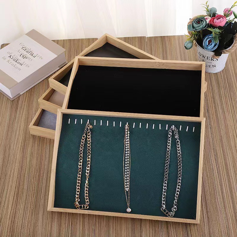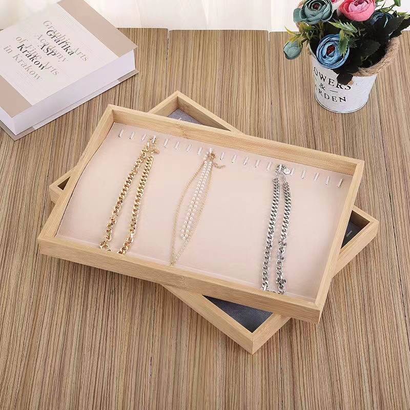 Bandeja expositor organizador bambu para collar, 35cmx24.5cmx3cm. Varios colores.